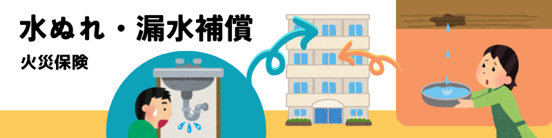 - 補償名:漏水による水濡れ、飛来物や外部からの物体の衝突などの補償