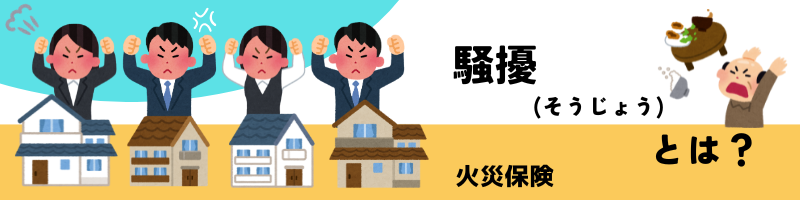 A.騒擾(そうじょう)・集団行動等に伴う暴力行為とは、群衆または多数の者の集団の行動によって数世帯以上またはこれに準ずる規模にわたり平穏が害される状態または被害を生ずる状態であって、暴動(*)に至らないものをいいます。