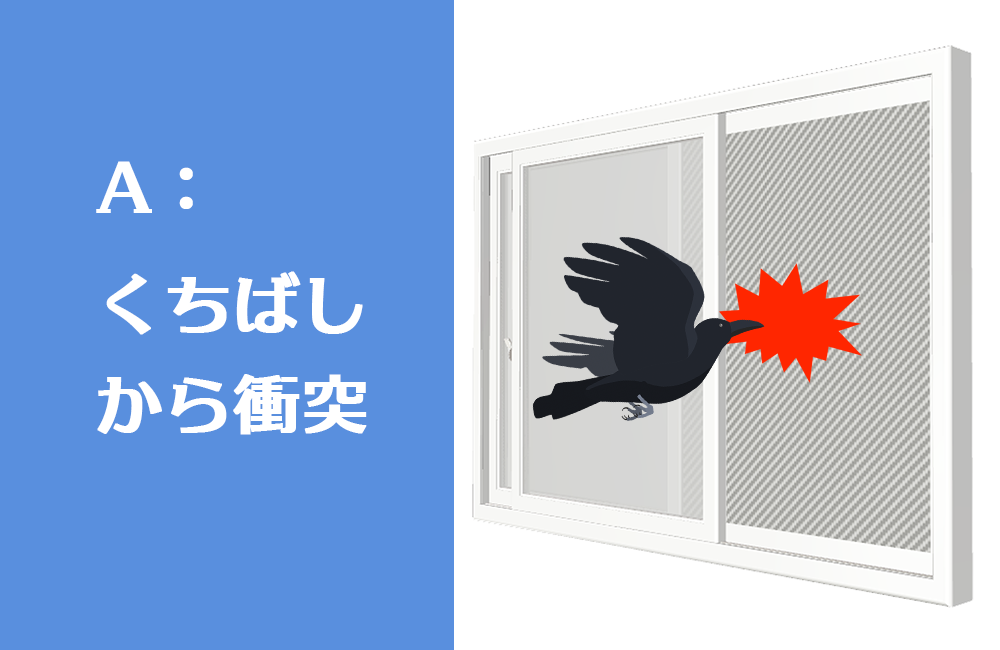 最後に、カラスの衝突により網戸が破れてしまった例について解説します。