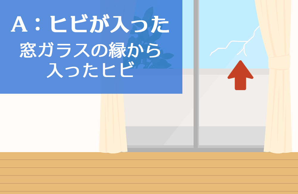 A:ヒビが入った(窓ガラスの縁からヒビ)