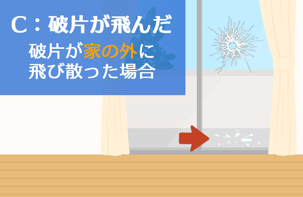 C:破片が飛んだ(破片が家の外に飛び散った場合)